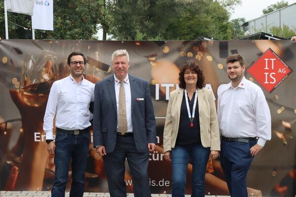 Von links nach rechts: Bezirkstagespräsident Dr Olaf Heinrich, Organisatorin Frau Pongratz und Firmengründer & CEO der ITIS AG Jörg Lorenz am Stand der  ITIS AG.