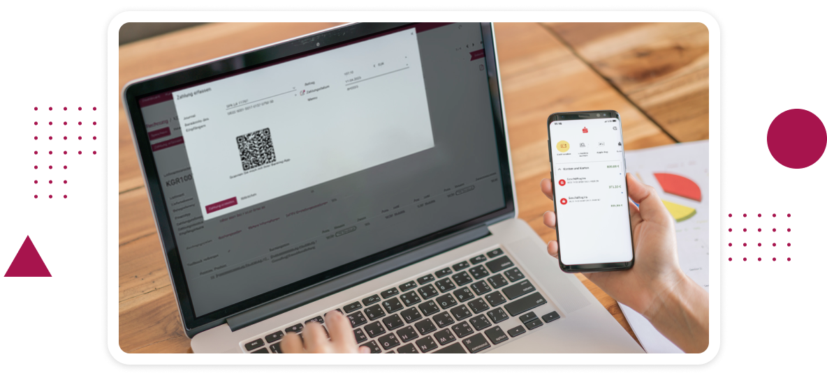 The QR code generated from the invoice can now be scanned with your cell phone. All relevant details are transferred automatically and you can trigger the payment with just a few clicks, without the need for manual and therefore error-prone entries.