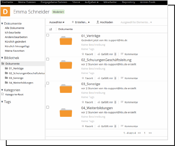 Each employee gets their own digital page in the document system, where documents are automatically categorized and stored in structured folders.