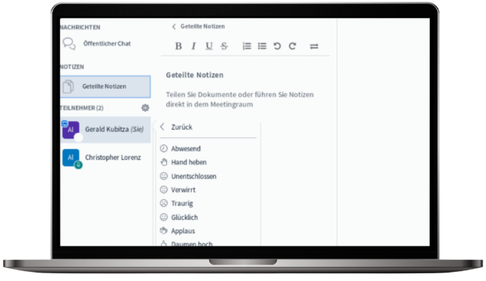 Upload or switch your presentation quick and easy via "drag and drop", even during the current online-meeting, and react directly on upcoming questions or issues, for example during trainings or web-conferences with customers!