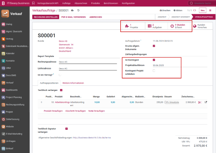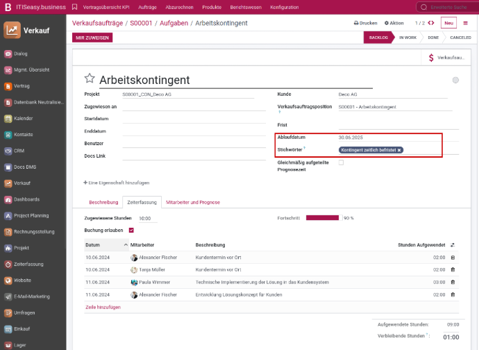 Quota Management in ITISeasy.business lets you bill customers upfront for a specific number of hours