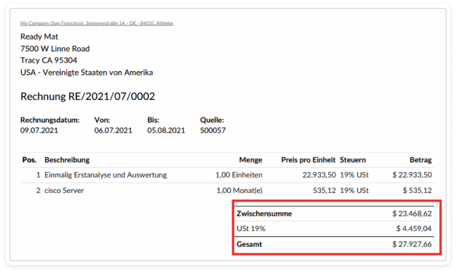 The invoice amount here is composed of the two amounts, recurring and one-time, and is presented as a single amount. Splitting it here no longer makes sense since the relevant information on the invoice is the total amount to be paid.