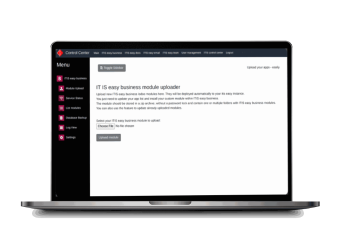 Experience full control of your business software suite with ITISeasy.control-center.